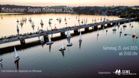 Auch dieses Jahr fand auf Initiatve des Segelclubs Möhnesee Süd wieder das Midsummer-Segeln auf dem Möhnesee statt. Mittlerweile nehmen alle Segelclubs und über 100 Segelboote an der Veranstaltung teil, damit wird sie zu einer Touristenattraktion.